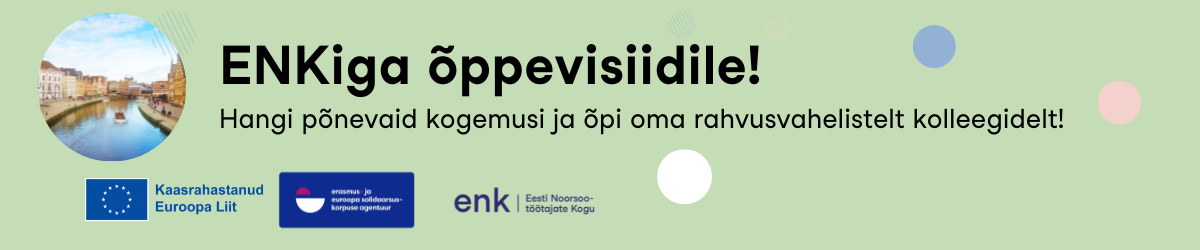 Kord aastas veebruaris on ENKil võimalus täiendavateks õppevisiitideks raha taotleda! Seega võta ENKi tegevjuht Heiliga aegsasti ühendust, et oma plaan läbi arutada! Kirjuta oma mõtetest: heili@enk.ee.